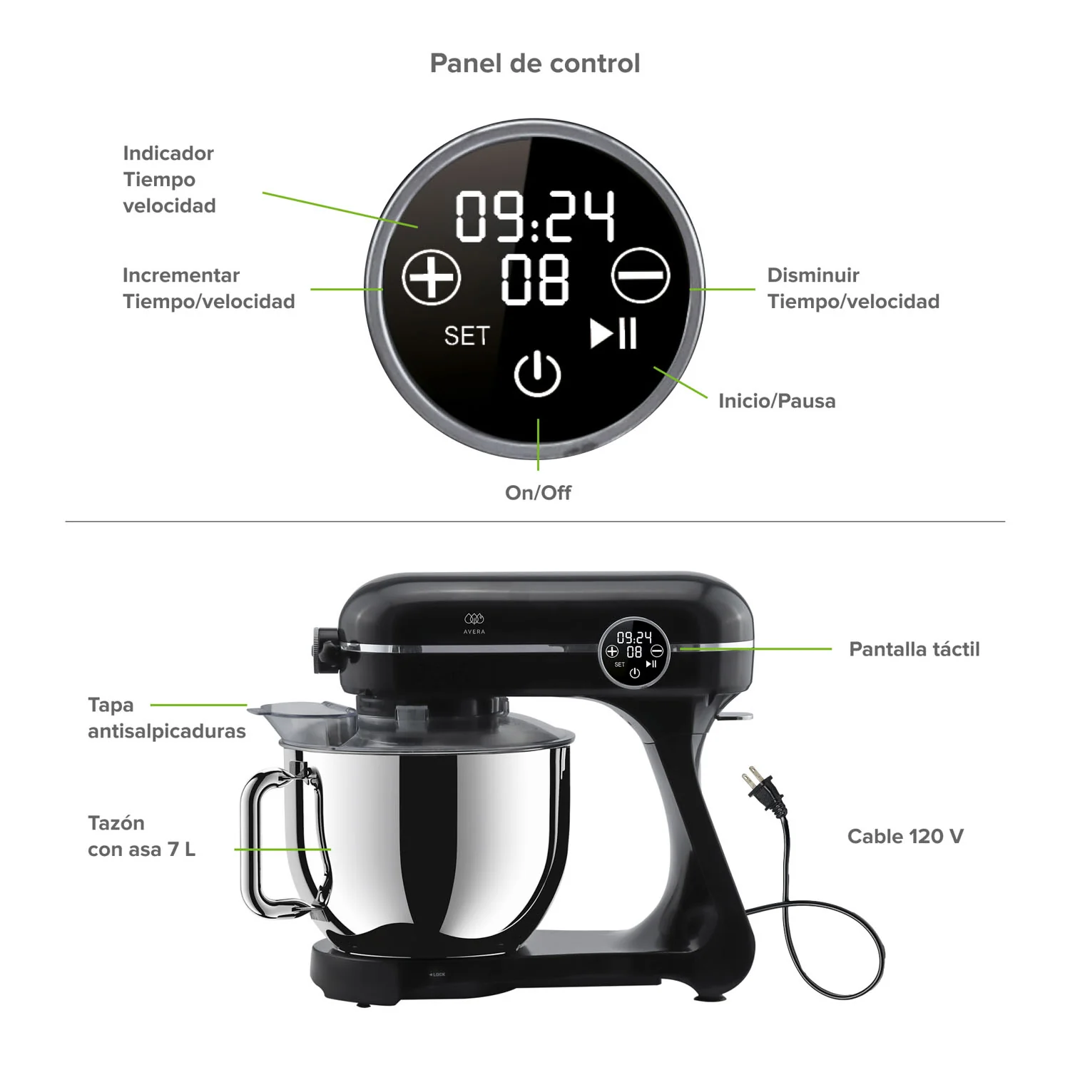- Potencia Confiable: Con 800 W de potencia, puede manejar masas pesadas para pan o pizza sin esfuerzo.