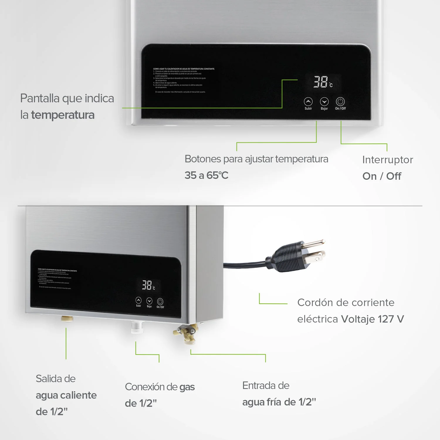 Este calentador de agua modulante es la inversión inteligente para un hogar que valora el confort, la eficiencia y la seguridad. Su tecnología avanzada te asegura agua caliente ilimitada y la temperatura deseada. No esperes más para transformar tu rutina diaria. Adquiérelo hoy mismo con la seguridad de nuestra garantía de 2 años .