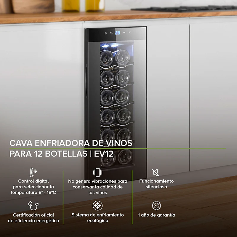 Arma tu combo de cava enfriadora + sacacorchos eléctrico y vive toda una experiencia a la hora de abrir tus botellas de vino. La cava cuenta con un diseño elegante y moderno que va bien con cualquier habitación. El sacacorchos te facilitará la manera de abrir tus botellas.