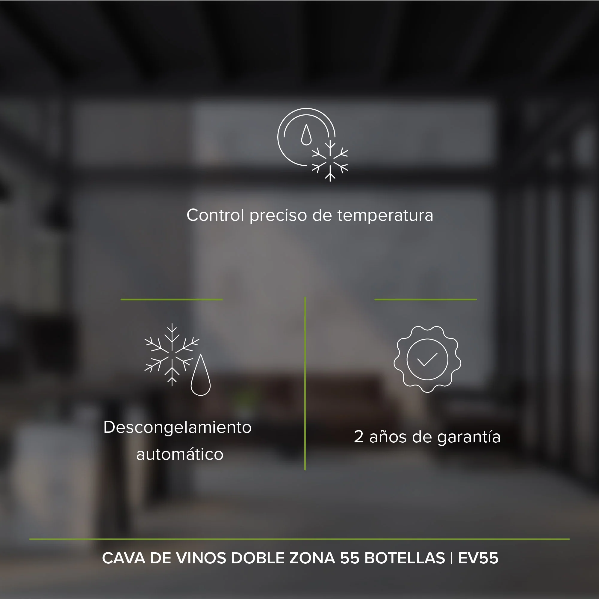 Cava de vinos 55 botellas con 2 zonas de temperatura 150L