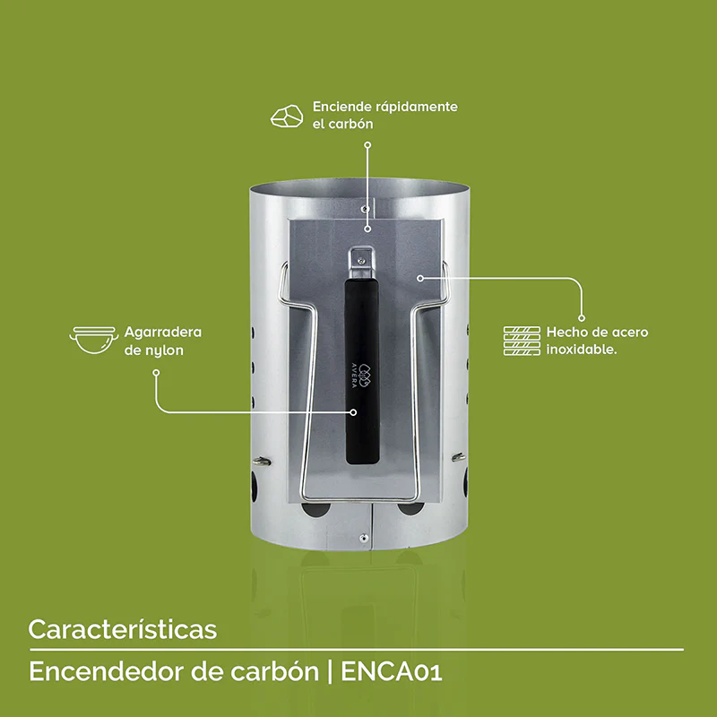 Disfruta de parrilladas sin esperas, encendiendo tu asador de forma rápida y eficiente. Con el encendedor de carbón Avera, obtendrás la brasa perfecta en minutos, permitiéndote concentrarte en lo que realmente importa: compartir momentos inolvidables con familia y amigos. Diseñado para el hogar mexicano que busca soluciones prácticas y duraderas.