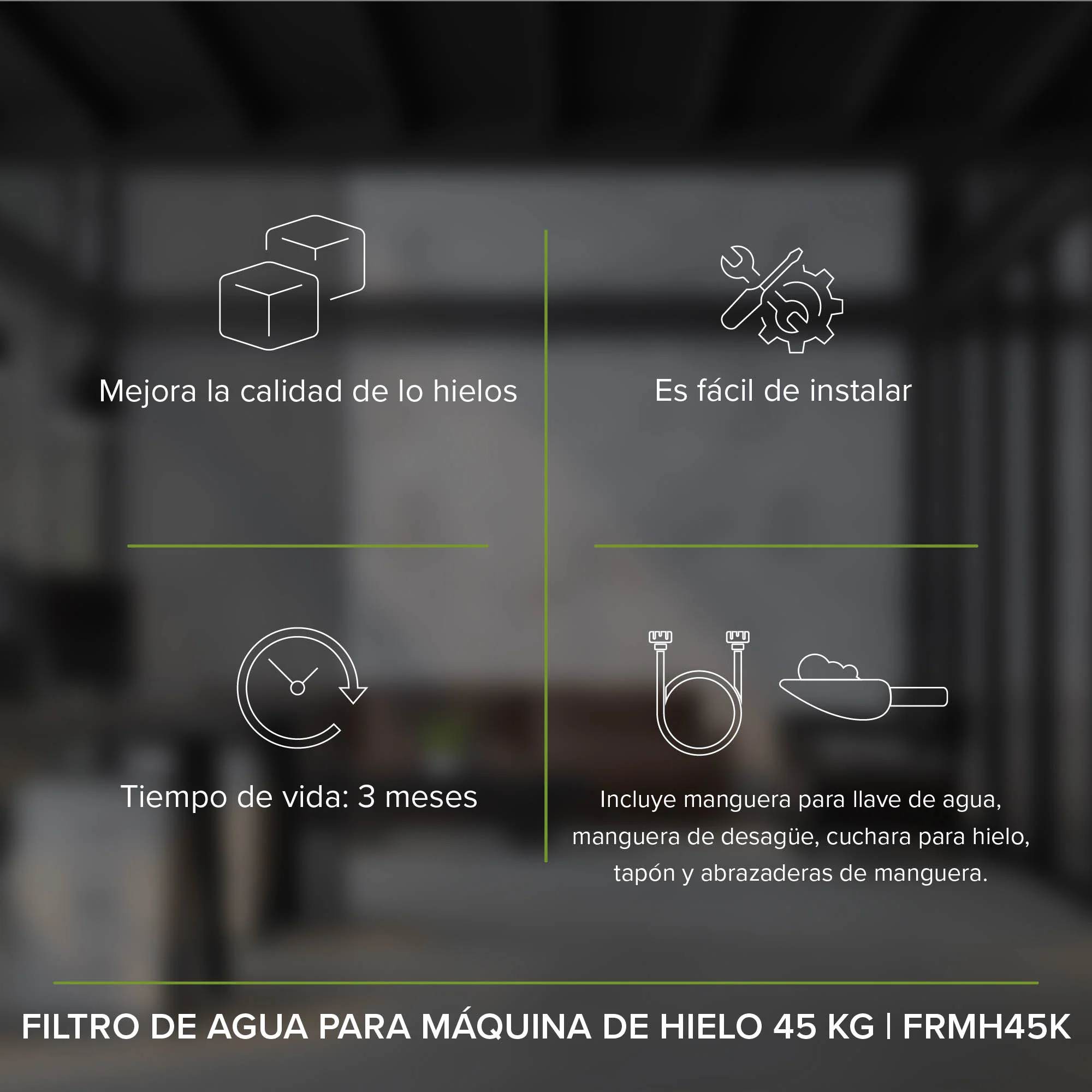 Asegura que tu máquina de hielos de 45 kg funcione correctamente con este filtro, pues previene obstrucciones en la tubería.