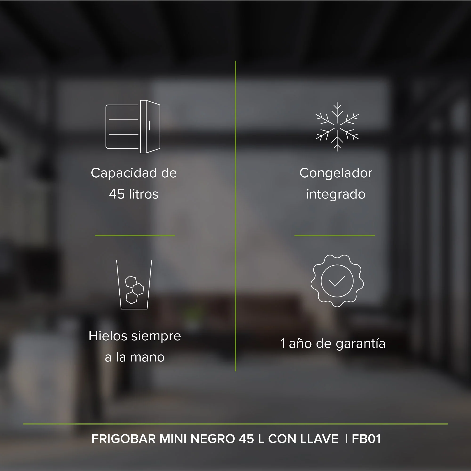 Frigobar 45 L 1.6 pies con puerta reversible y llave - negro