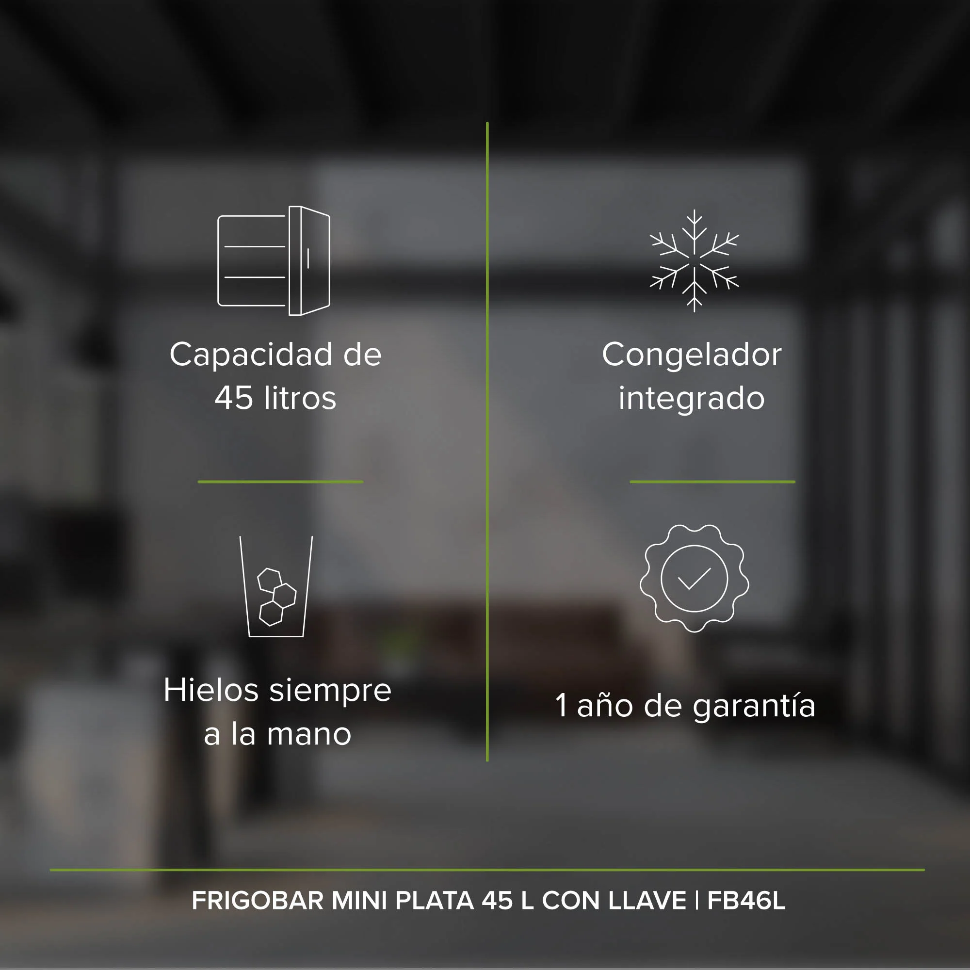 - Tamaño Ideal: Con 1.6 pies cúbicos, es el frigobar mini perfecto para tu oficina, habitación o estudio, sin estorbar.