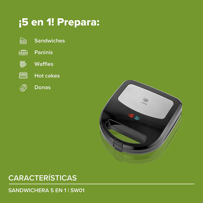 ¿No sabes qué preparar para el desayuno? ¡Esta sandwichera 5 en 1 es la solución! Haz waffles, hot cakes, paninis, sándwiches y donas, todo en un solo electrodoméstico.