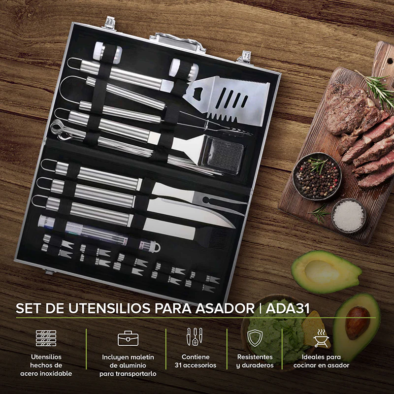Kit de utensilios para asador de acero inoxidable - 31 piezas